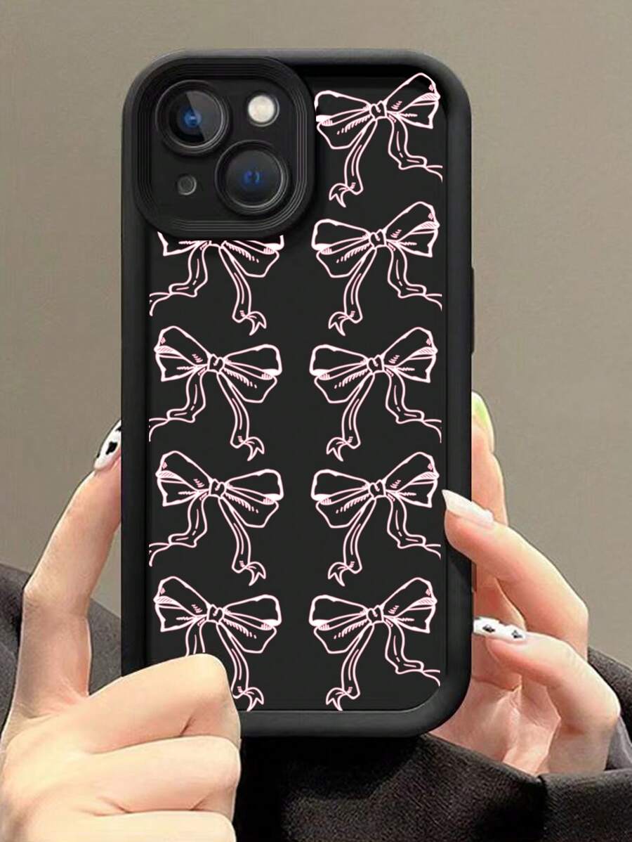 Kawaii 1 pieza Pulsera con lazo negro y perlas & Funda de teléfono con lazo negro, compatible con iPhone 11 12 13 14 15 Pro Max