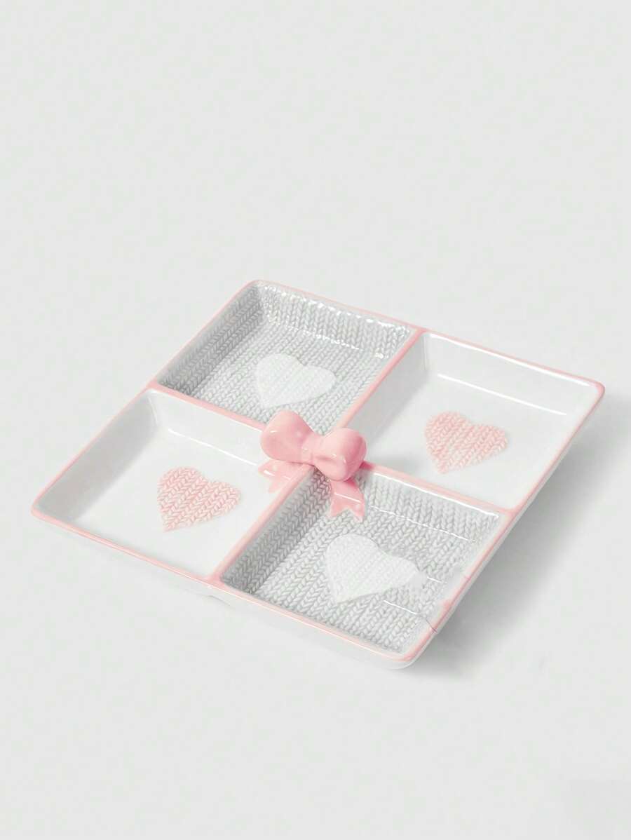 Kawaii 1 pieza Bandeja de cerámica dividida con lazo, plato decorativo lindo para joyas (Los productos de cerámica pueden tener pequeñas manchas negras que son un fenómeno normal de fabricación)