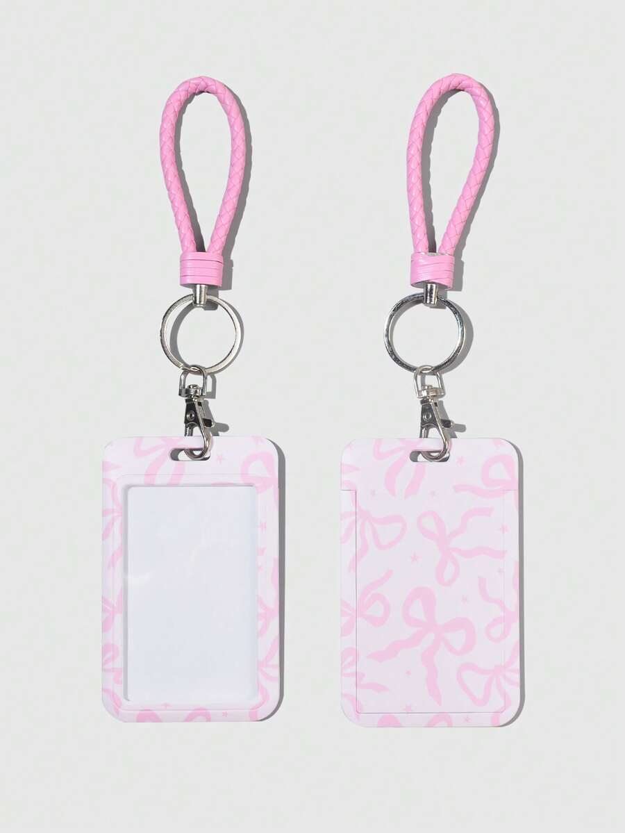 Kawaii 1 pieza Estuche con tapa deslizante con lazo adorable para tarjetas de identificación/acceso, de vuelta a la escuela, San Valentín