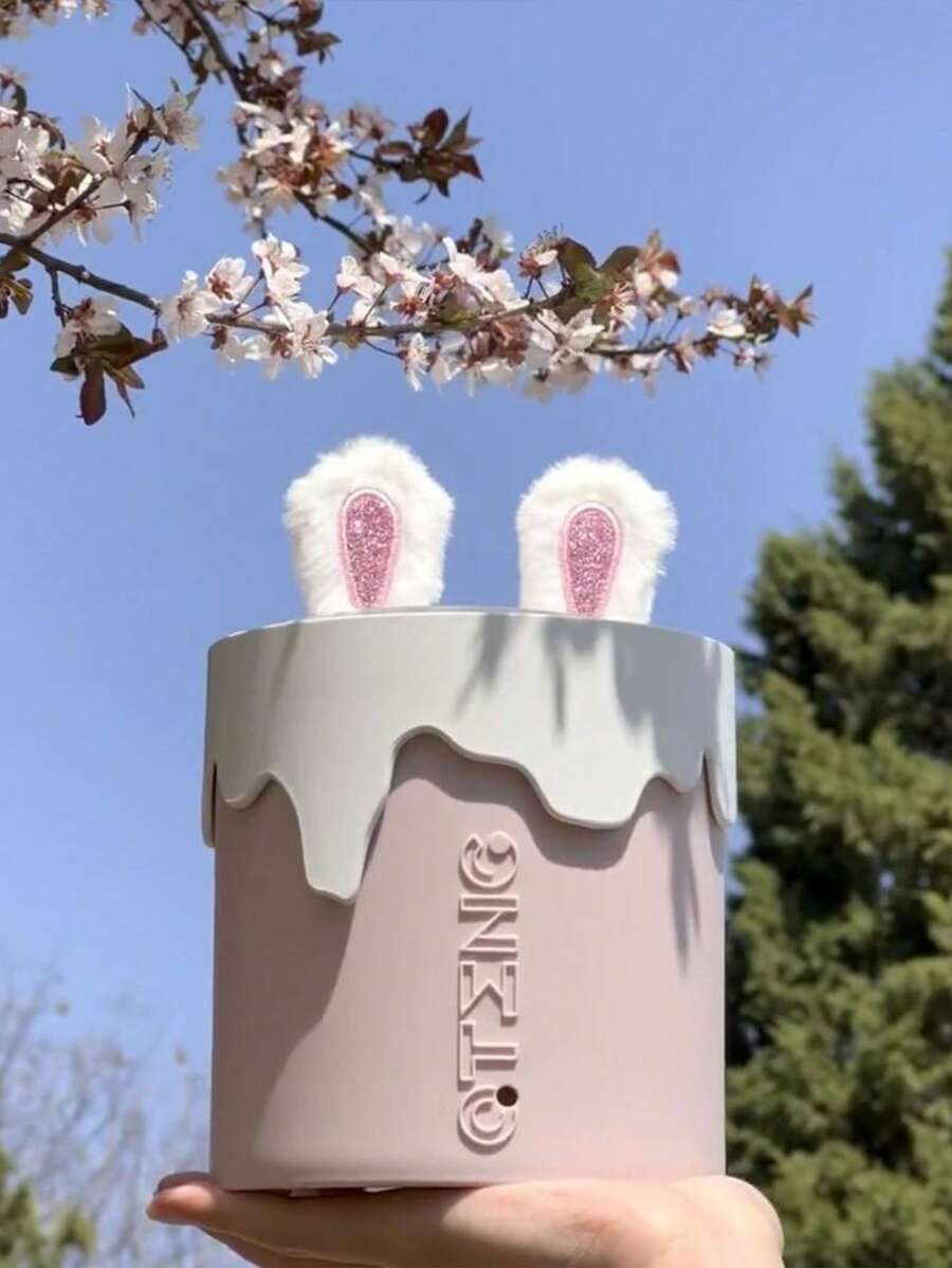 Kawaii 1 Pieza Lindo Mini Bote De Basura De Escritorio Rosa Con Orejas De Conejo