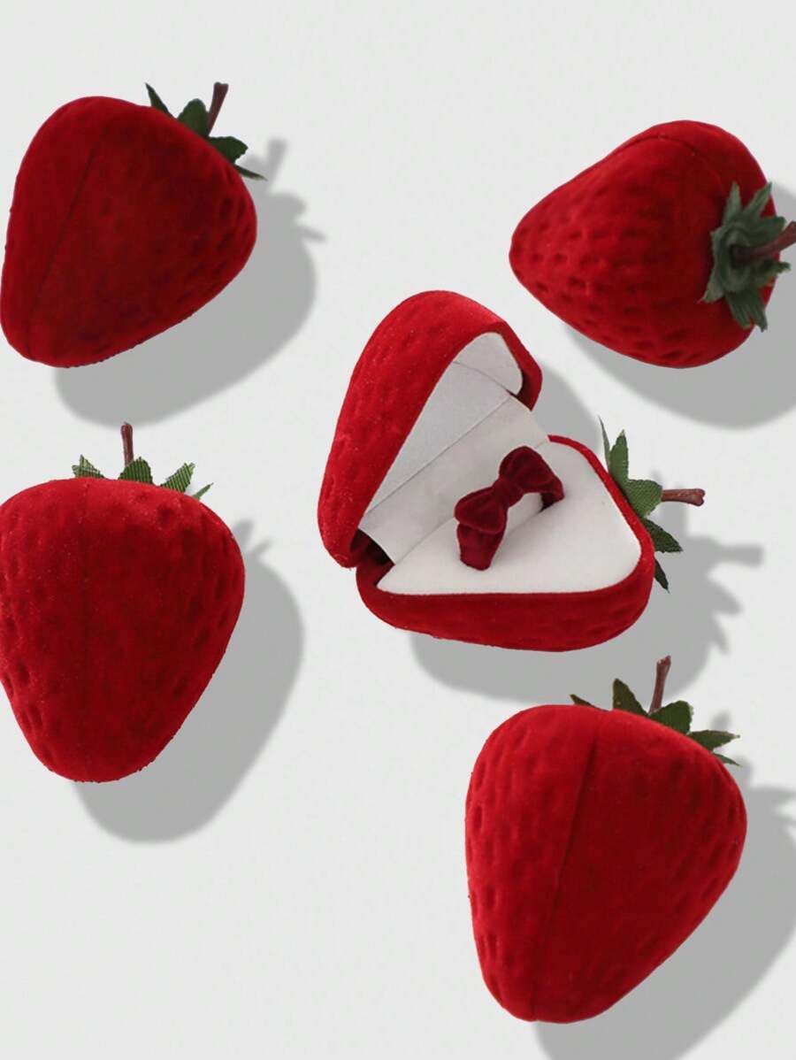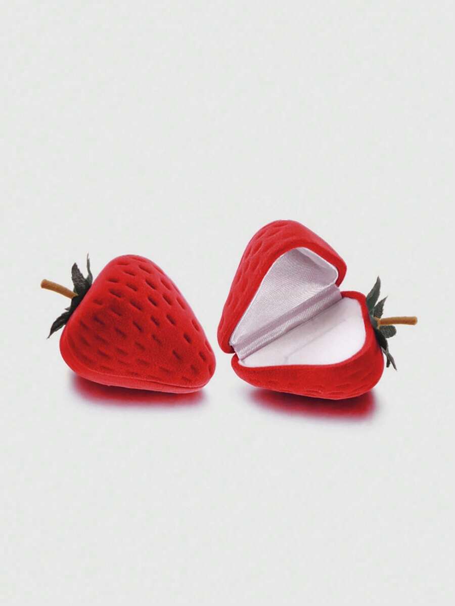 Kawaii 1 Pieza Caja De Almacenamiento De Anillos En Forma De Fresa Roja Linda
