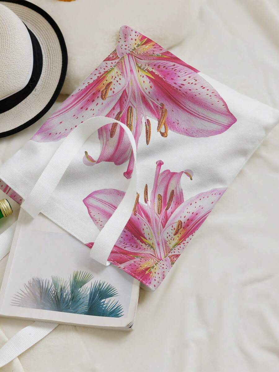 Kawaii 1 pieza Bolso de tela casual/de viaje con estampado floral doble cara, 2 grandes motivos florales, color rosa