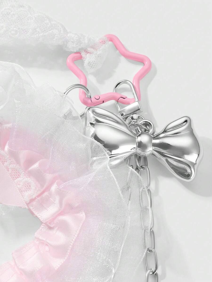 Kawaii 1 pieza Elegante llavero de cadena de metal plateado con lazo de encaje, accesorio versátil portador de tarjetas/identificación para mujeres, estudiantes y trabajadores de oficina, adecuado como regalo de vacaciones