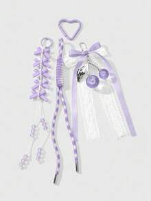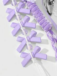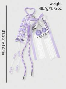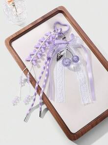 Kawaii 1 pieza Exquisita, elegante y versátil cuerda trenzada con moño de cinta, malla, resina y cuentas de cereza púrpura, DIY llavero/colgante de bolso, apropiado para mujeres, niñas, uso diario y regalo festivo