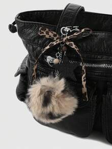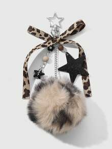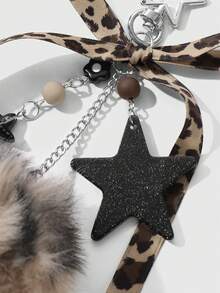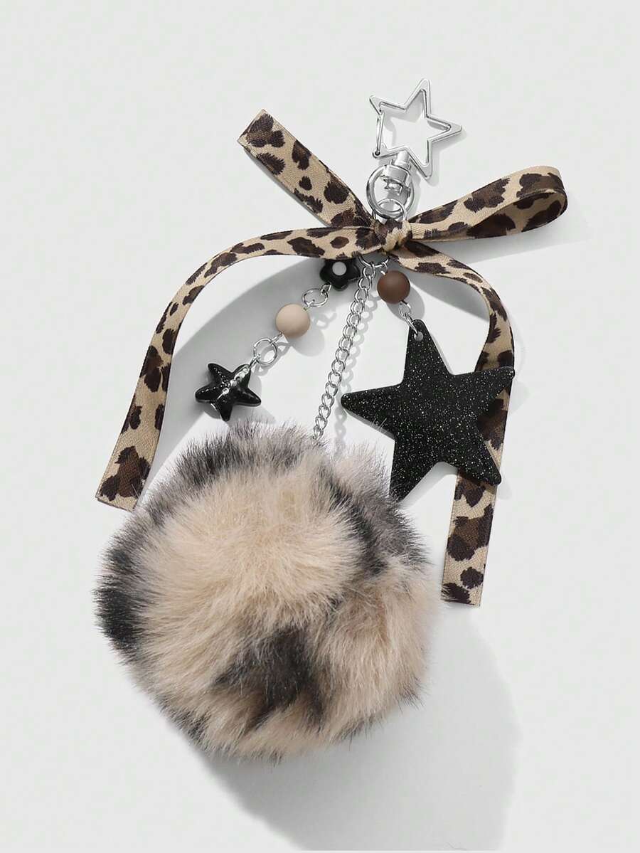 Kawaii 1 pieza Llavero/Dije de moda retro personalizado con estrella de acrílico, flor, moño de piel de leopardo marrón, adecuado para mujeres, uso diario, regalo de vacaciones