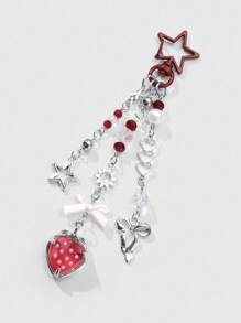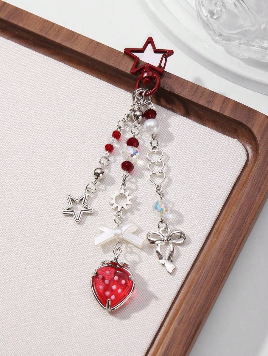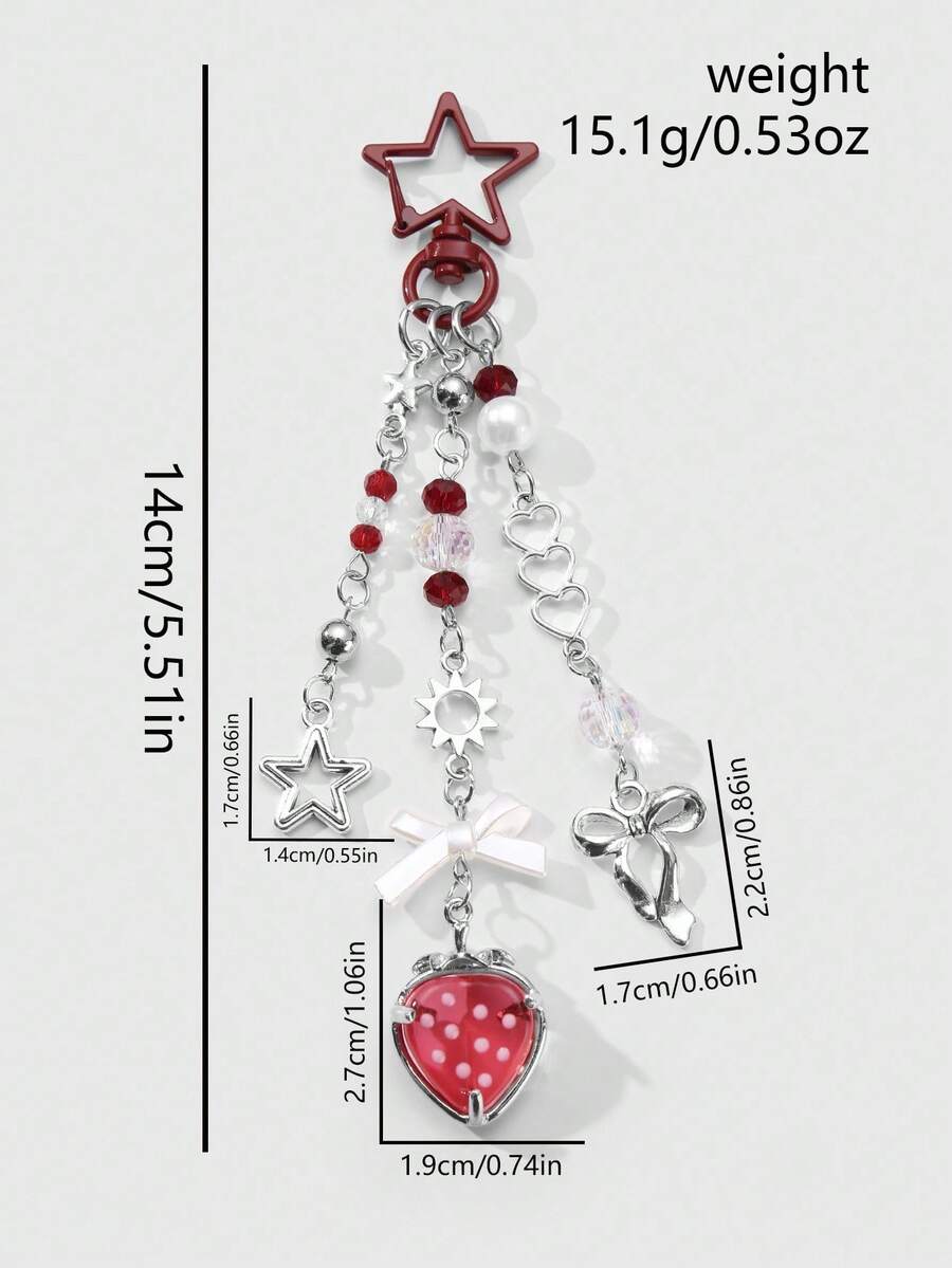 Kawaii 1 pieza de cadena de plata con dije de perla sintética, cristal, estrella hueca, corazón, mariposa y fresa, de moda, versátil y con apariencia de alta gama, para hacer llavero, accesorio de bolso, adecuado para damas, uso diario y regalo de vacaciones