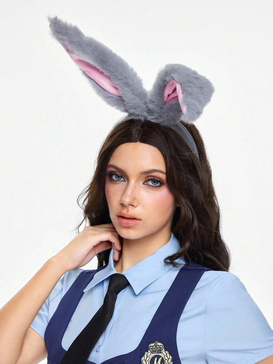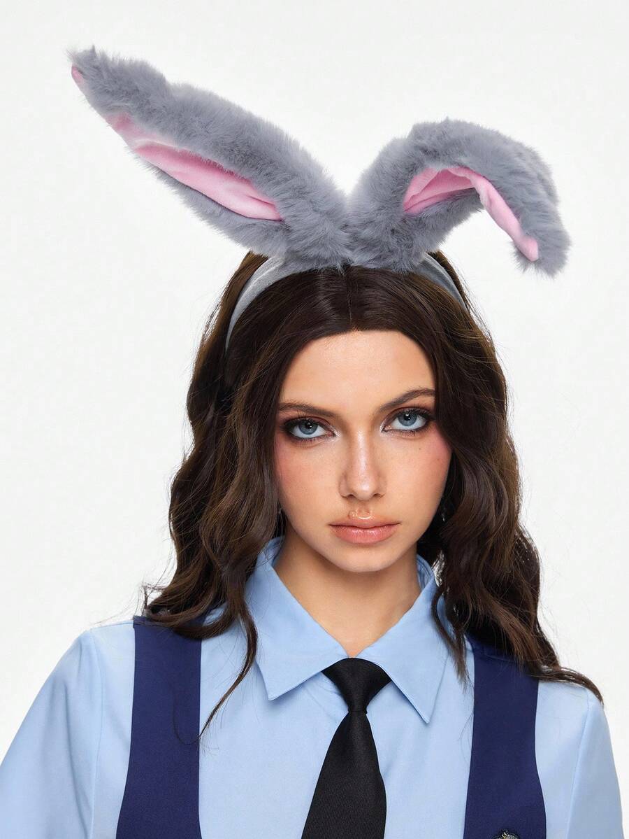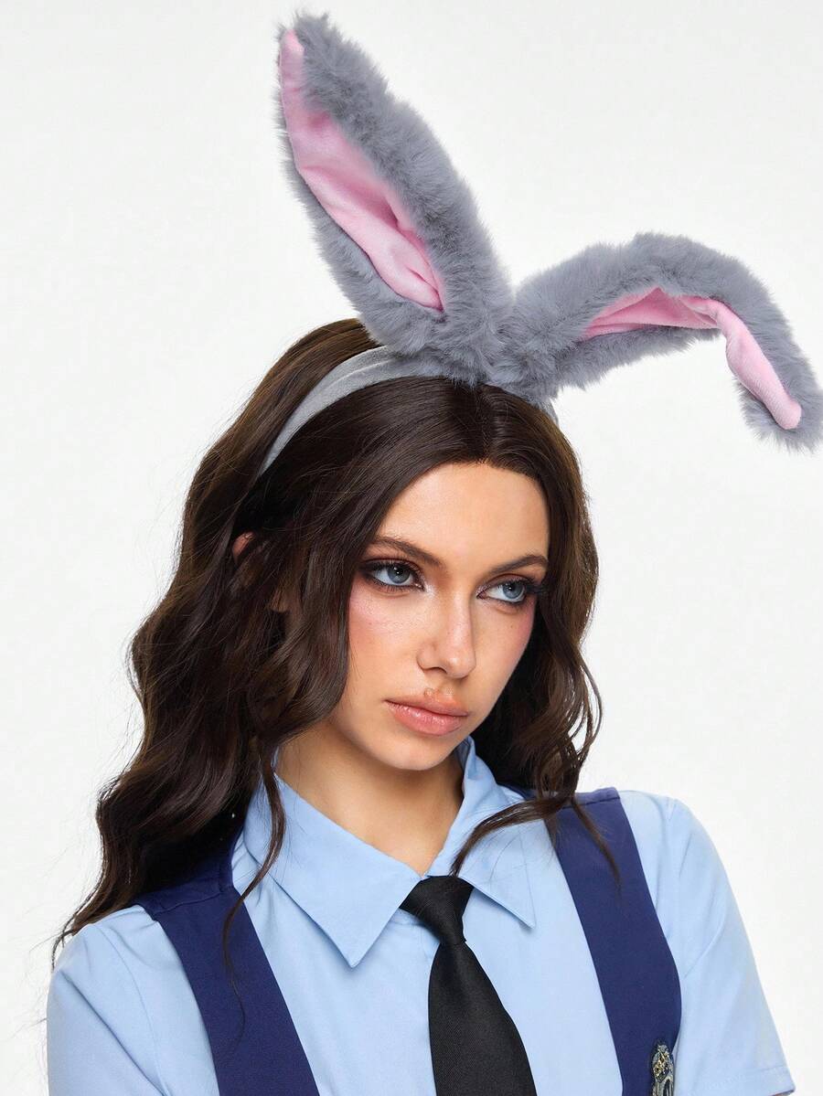Kawaii 1 pieza Diadema de orejas de conejo de peluche gris