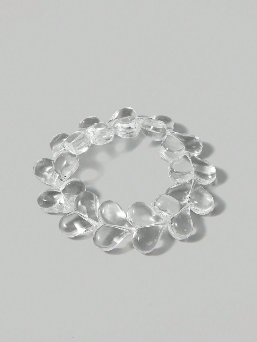 Kawaii 1 pieza Pulsera de estilo minimalista con forma de corazón de sirena, hecha a mano con cuentas acrílicas transparentes