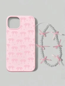 Kawaii 1 pieza Estuche de teléfono móvil con diseño de corazón, lunares y moño, color rosa