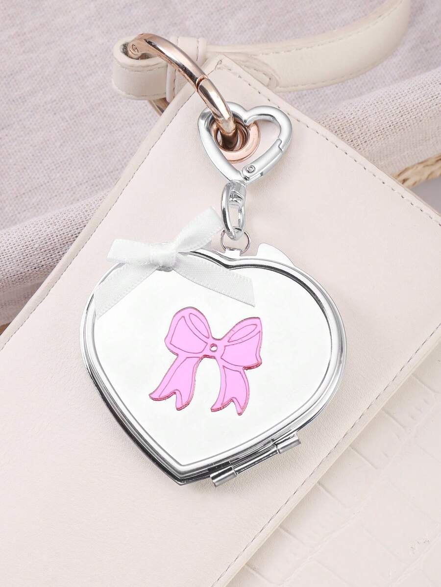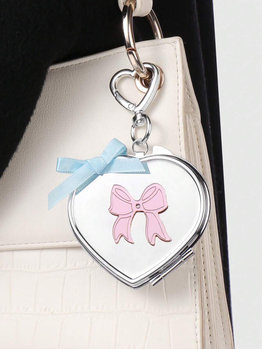 Kawaii 1 pieza Estilo INS Elegante dulce y versátil de alta calidad Llavero con dije de corazón de vidrio con lazo de acrílico de varios colores, adecuado para mujeres/niñas, regalo ideal
