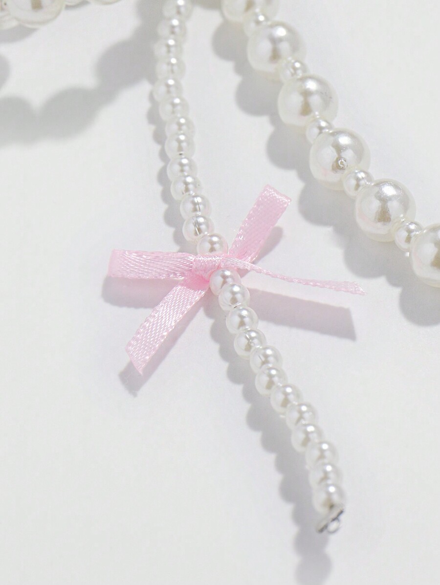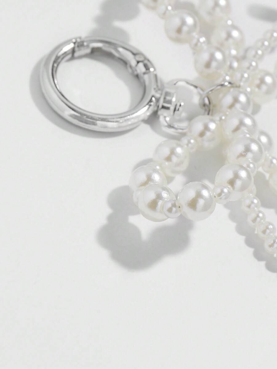 Kawaii 1 pieza Llavero con moño rosa y llavero con moño de perla al estilo coreano, regalo de vacaciones