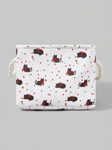 Kawaii 1 pieza Cesta de lavandería de gran capacidad con adorno de lazo de gato y fresa con lunares y con ribete de encaje, cesto de almacenamiento portátil 1440731