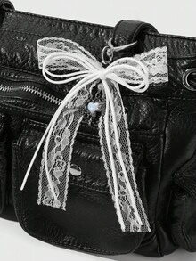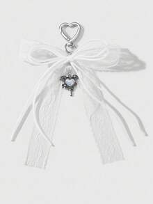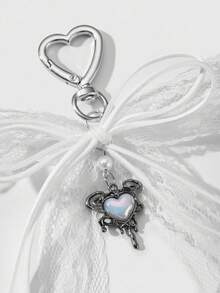 Kawaii 1 pieza Llavero/Dije de bolso con corazón de resina líquida de doble capa, lazo de encaje y cuerda de terciopelo blanco, estilo universitario retro minimalista y versátil, adecuado para mujeres, uso diario, regalo de vacaciones