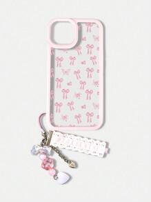 Kawaii 1 pieza Funda de teléfono con diseño de lazo rosa, compatible con 11 12 13 14 15 Pro Max