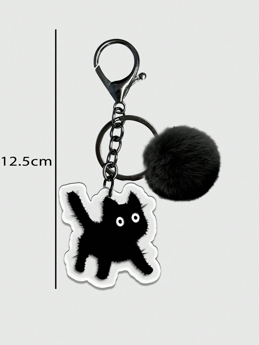 Kawaii 1 Pieza Llavero De Bola De Pelo Negro Con Temática De Gato Asustado