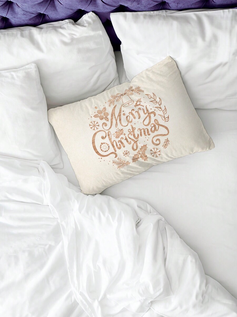 Kawaii 1 pieza con slogan con estampado de Navidad Funda de cojín sin relleno , casual lavable Funda de almohada cuadrada decorativa para decoración diaria