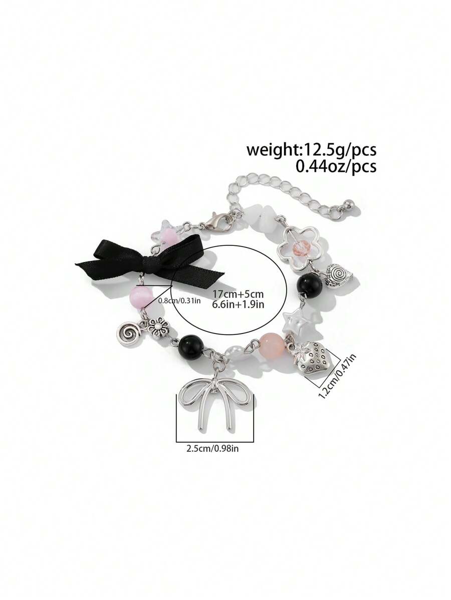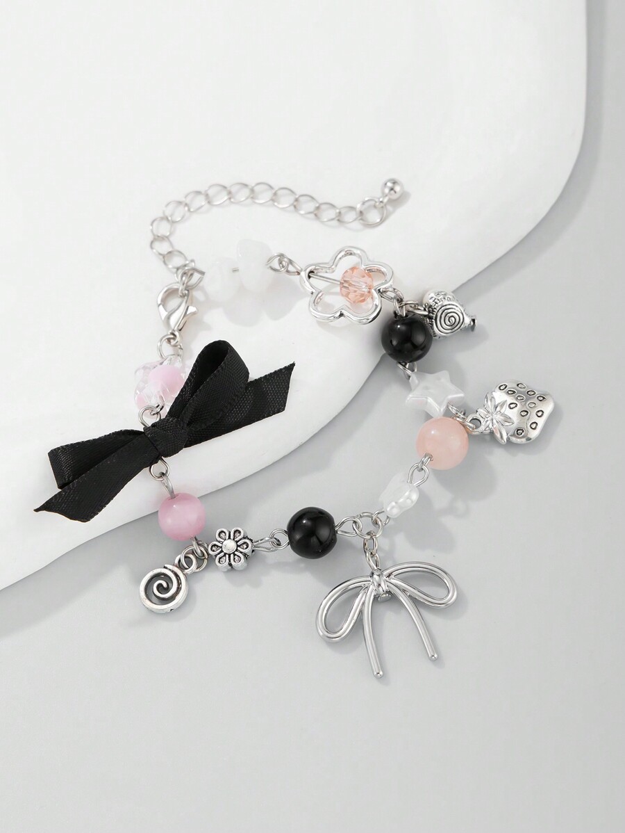 Kawaii 1 pieza Brazalete elegante de cadena con colgante de cristal con forma de estrella, fresa y lazo, perla artificial, para San Valentín, mamá, madre, Día de la Madre, regalo