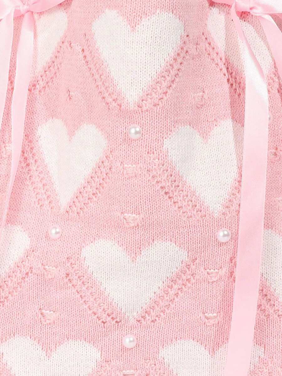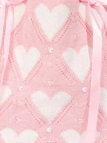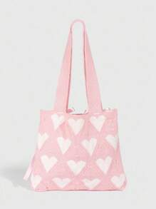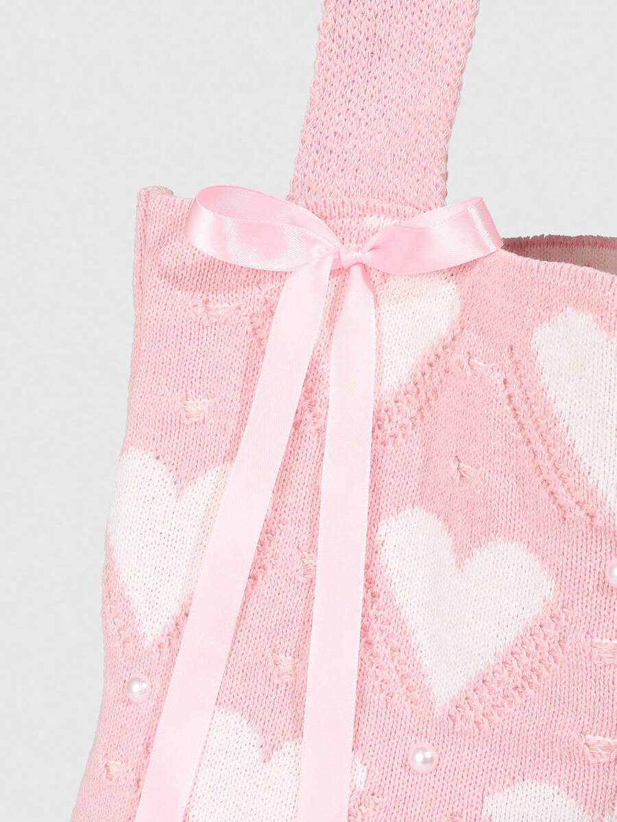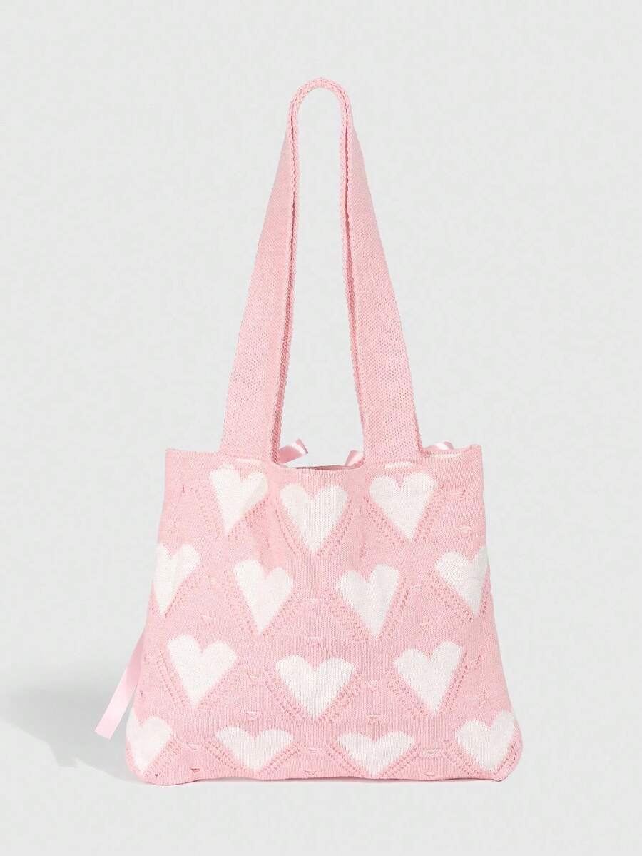 Kawaii 1 pieza Bolso de hombro con lazo rosa dulce, bolso de punto con corazón rosa, bolso de hombro estilo universitario, adecuado para el atuendo diario de las mujeres
