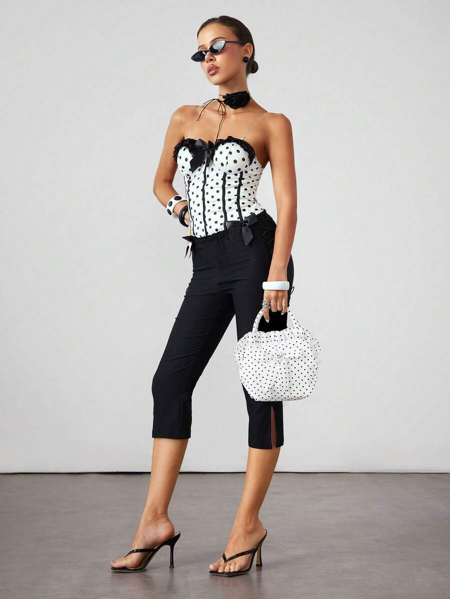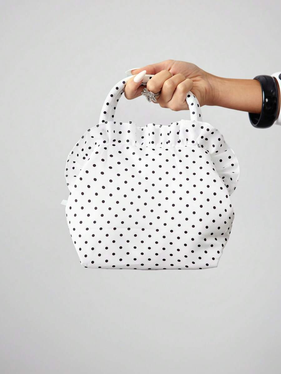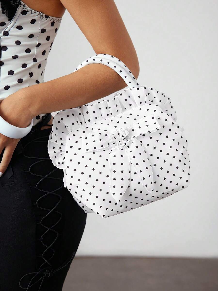 Kawaii 1 pieza Bolso de mano de dama con estampado floral de lunares dulces y decoración de lazo