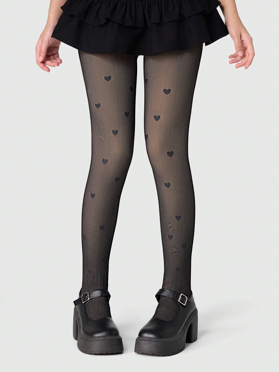 Kawaii 1 pieza Medias/Mallas/Leggings de punto gruesos y cálidos con diseño de corazón para mujeres