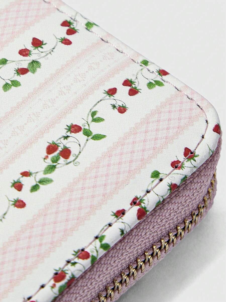 Kawaii 1 pieza Monedero de mujer con cierre de cremallera, estampado de cuadros y encaje con diseño de fresa, monedero pequeño, cartera mini, cartera linda para el Día de San Valentín
