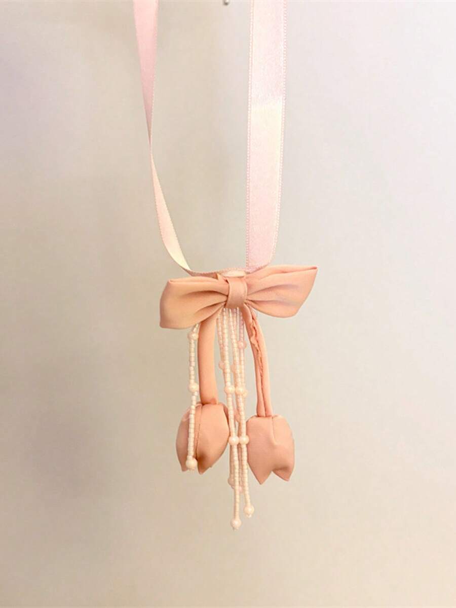 Kawaii 1 pieza Collar tipo gargantilla de mujer de satén de alta gama con lazo, con flores bordadas y flecos con cuentas