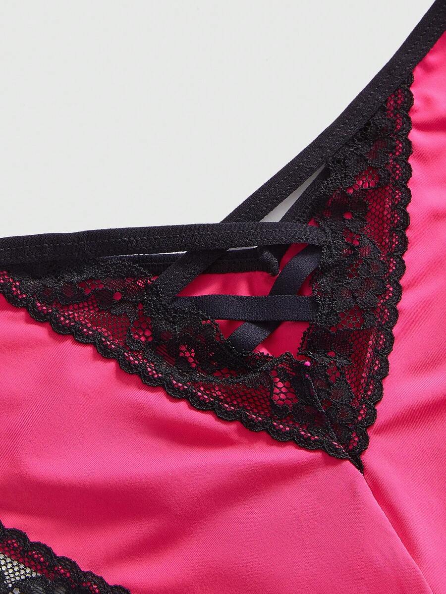 Kawaii 1 pieza Panty sexy de mujer con diseño de espalda cruzada y parches de encaje