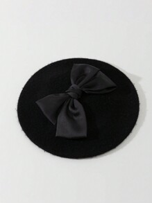 Kawaii 1 pieza Boina de unicolor para mujer con lazo, uso diario casual de moda minimalista, apta para el Día de San Valentín