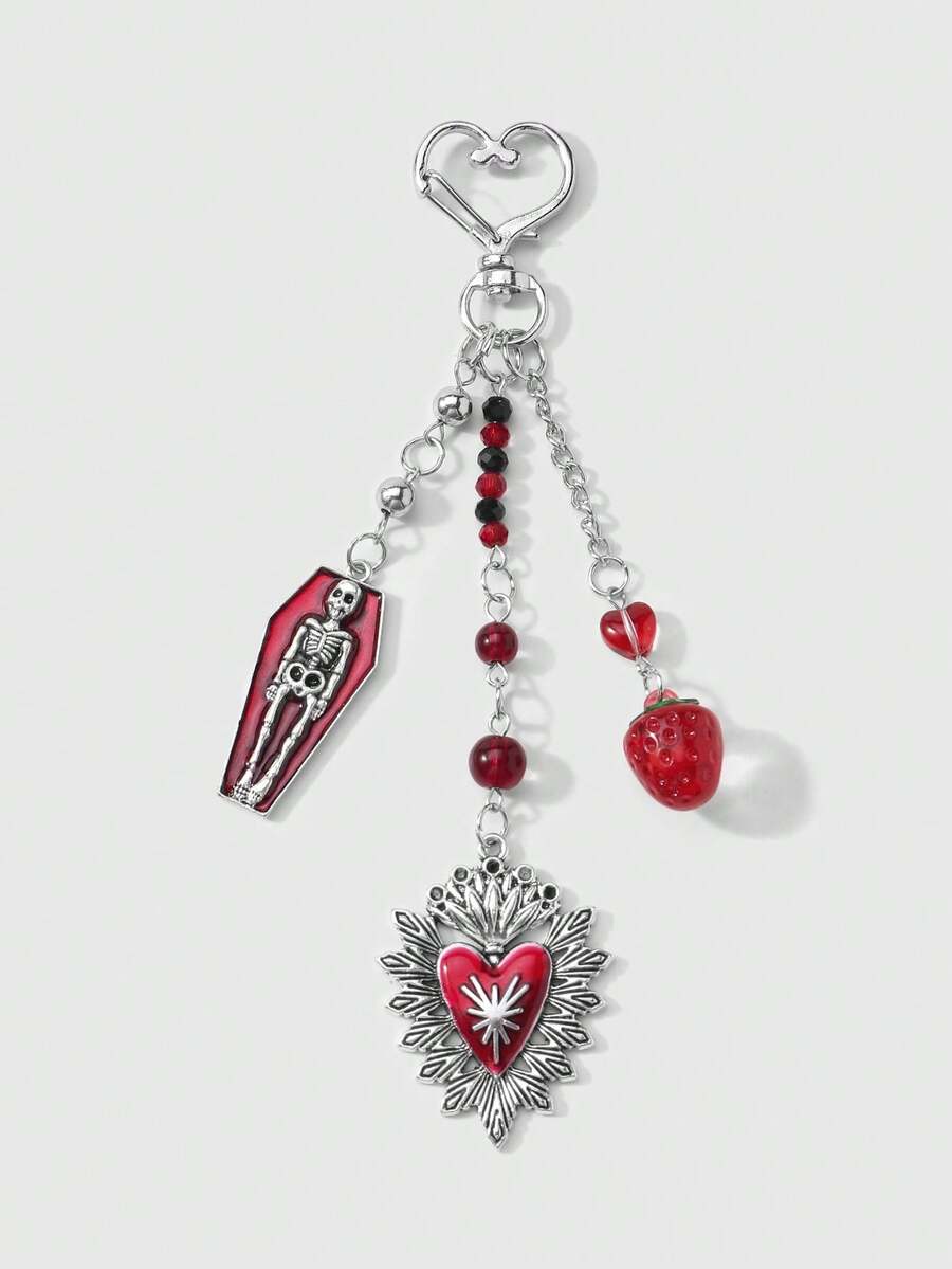 Kawaii 1 pieza Llavero elegante y de alta calidad con cadena de plata, dados, lazo, cristal, alas, corazón y cereza en estilo Y2K, adecuado para uso diario de mujeres/niñas, regalo para vacaciones