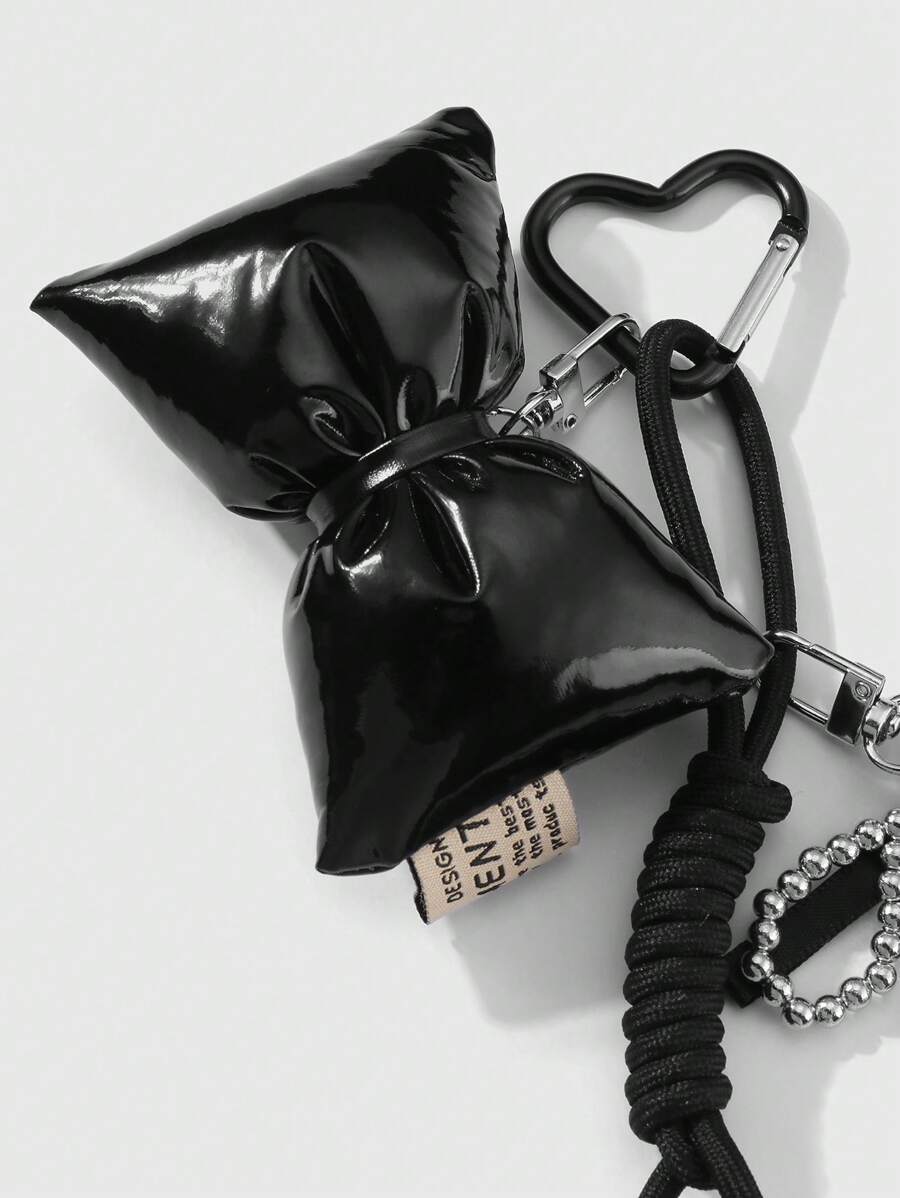 Kawaii 1 pieza de Llavero ajustable de paracord con corazón de moño 3D, cuentas de CCB plateadas y cinta, estilo gótico lujoso Y2K, adecuado para uso diario de mujeres/señoras o como regalo
