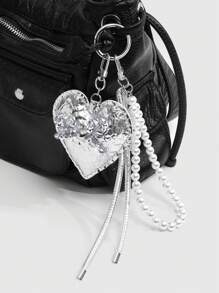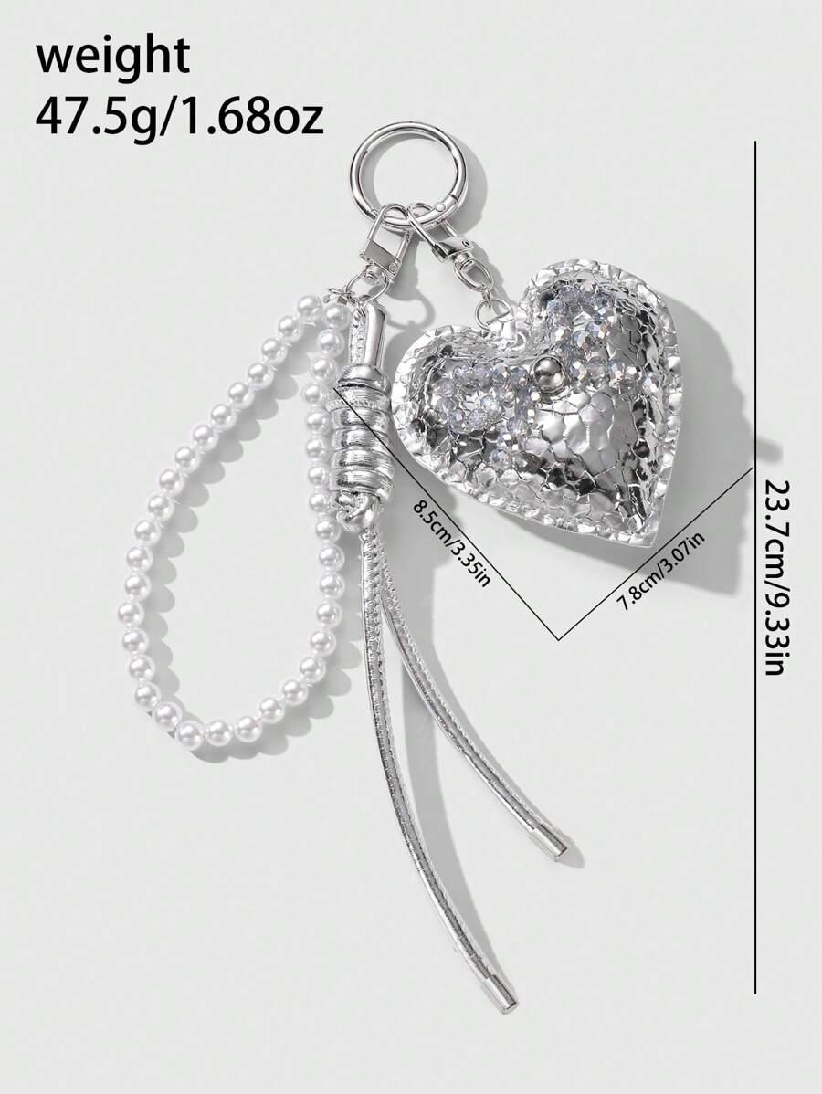 Kawaii 1 pieza Accesorio de moda de lujo Y2K hecho a mano, con perlas falsas blancas, cristal falso CCB, lazo, textura de piel de plata y colgante con forma de corazón, adecuado para mujer, uso diario o como regalo
