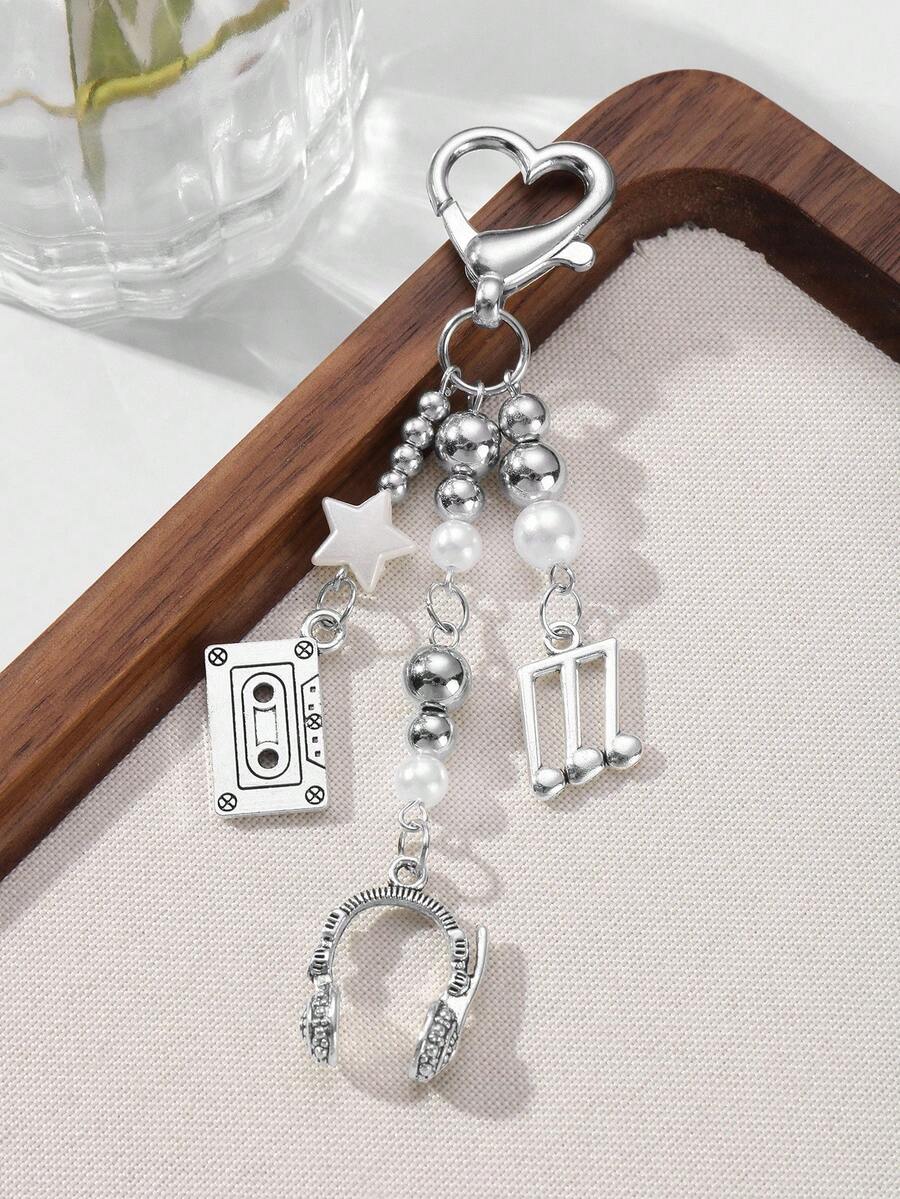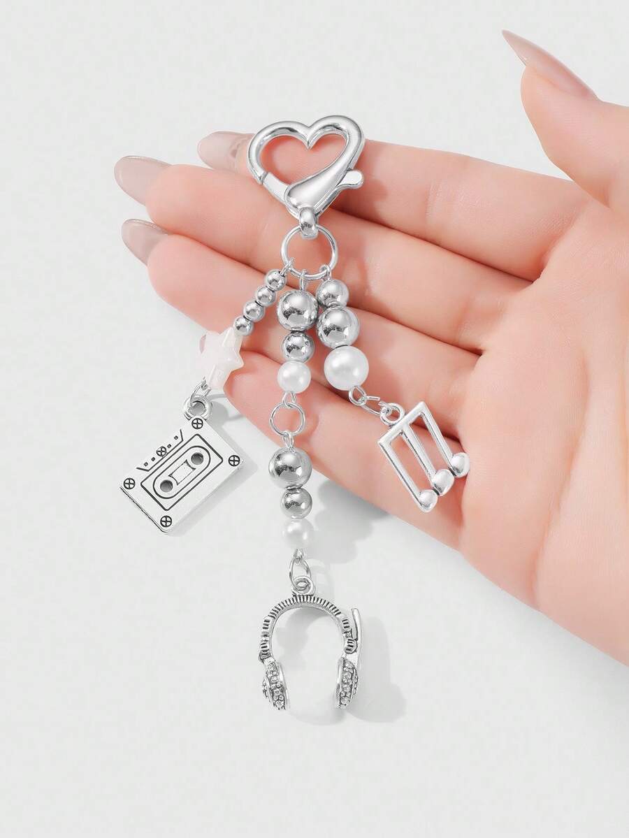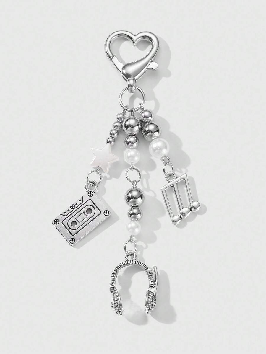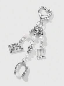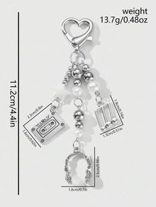 Kawaii 1 pieza Pendiente de casete de cinta de música en forma de corazón de resina CCB plateado de moda retro Y2K, versátil para festival de música, accesorio DIY para llavero o bolso, adecuado para mujer, uso diario, regalo de vacaciones