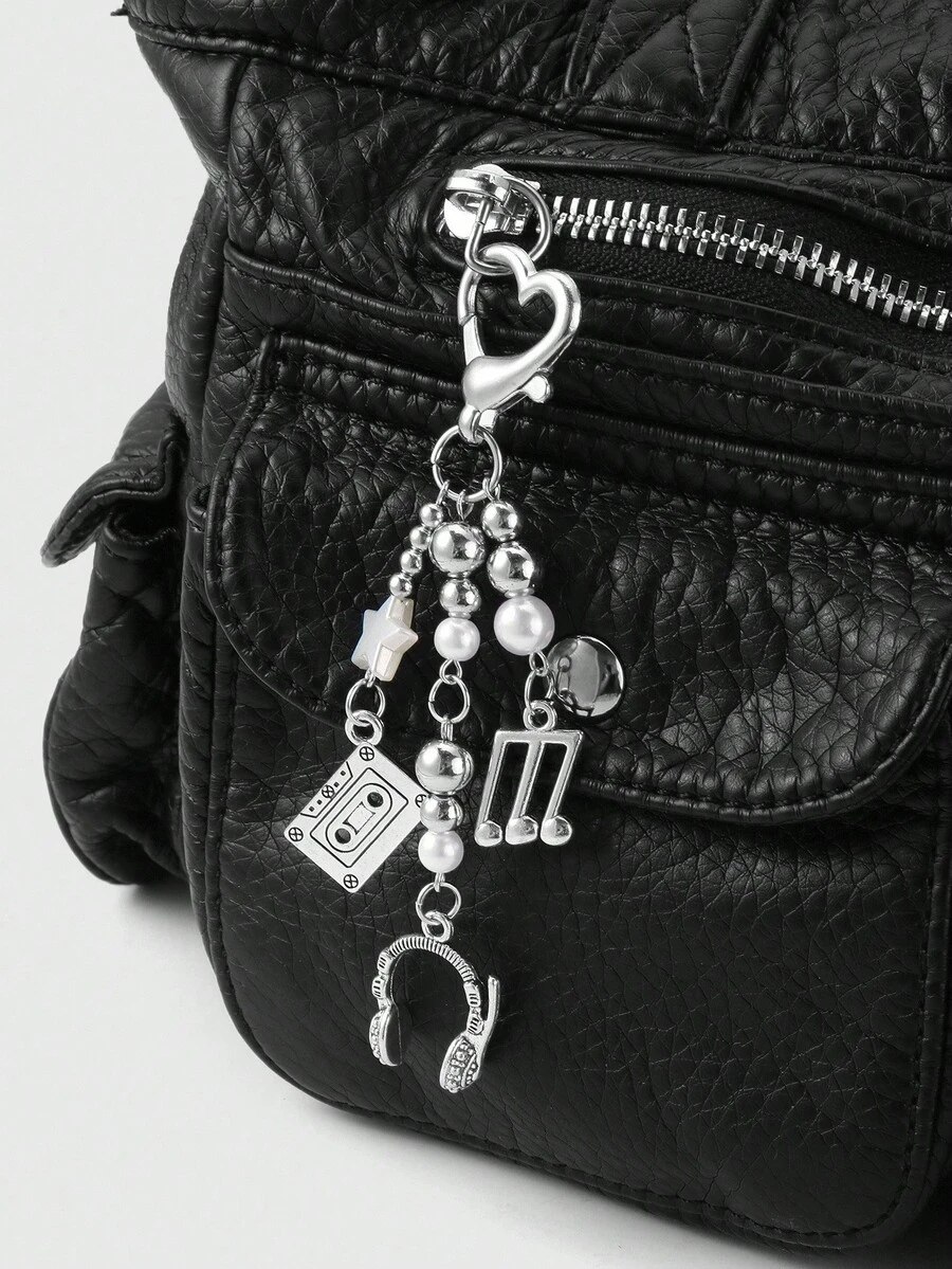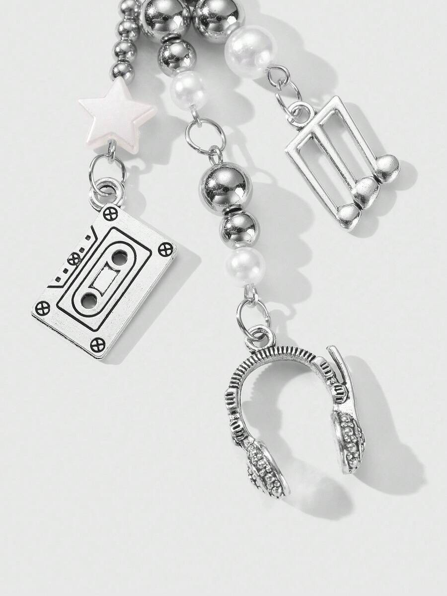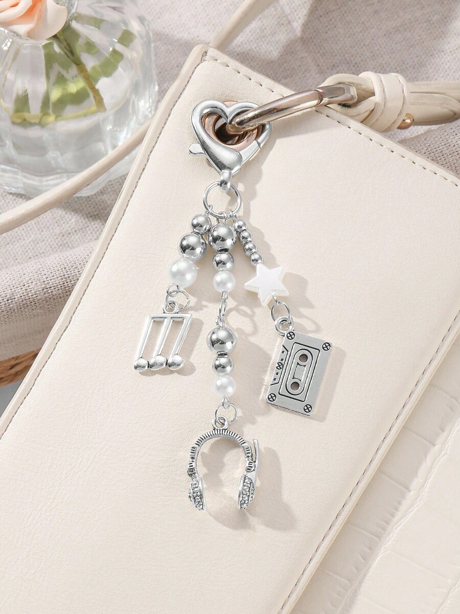 Kawaii 1 pieza Pendiente de casete de cinta de música en forma de corazón de resina CCB plateado de moda retro Y2K, versátil para festival de música, accesorio DIY para llavero o bolso, adecuado para mujer, uso diario, regalo de vacaciones