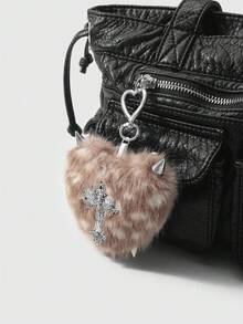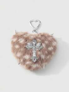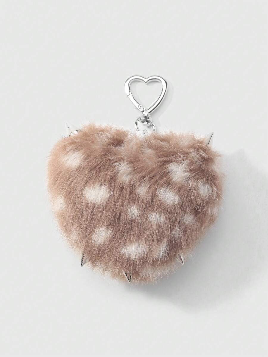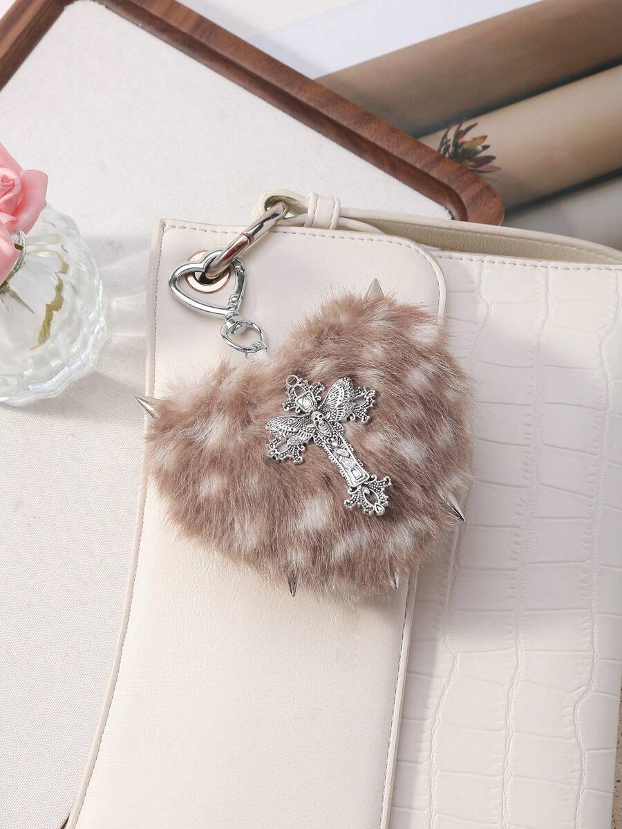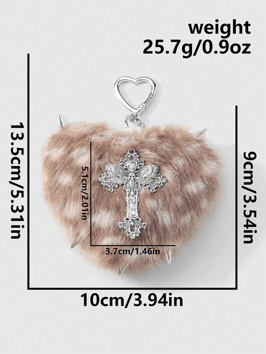 Kawaii 1 pieza Llavero con colgante de corazón cruzado 3D con remaches, estampado de leopardo de piel sintética marrón, estilo retro punk gótico Y2K, adecuado para mujeres, uso diario o regalo, Halloween