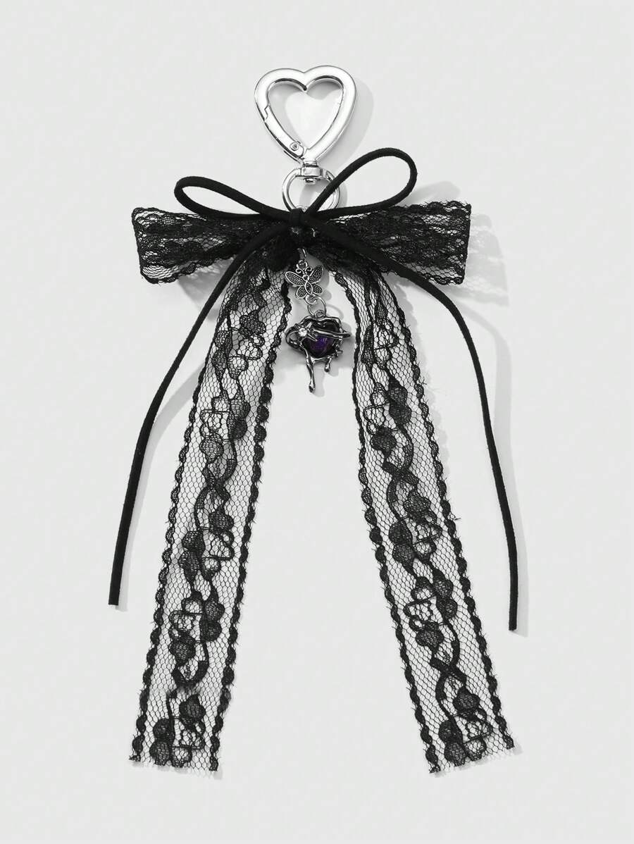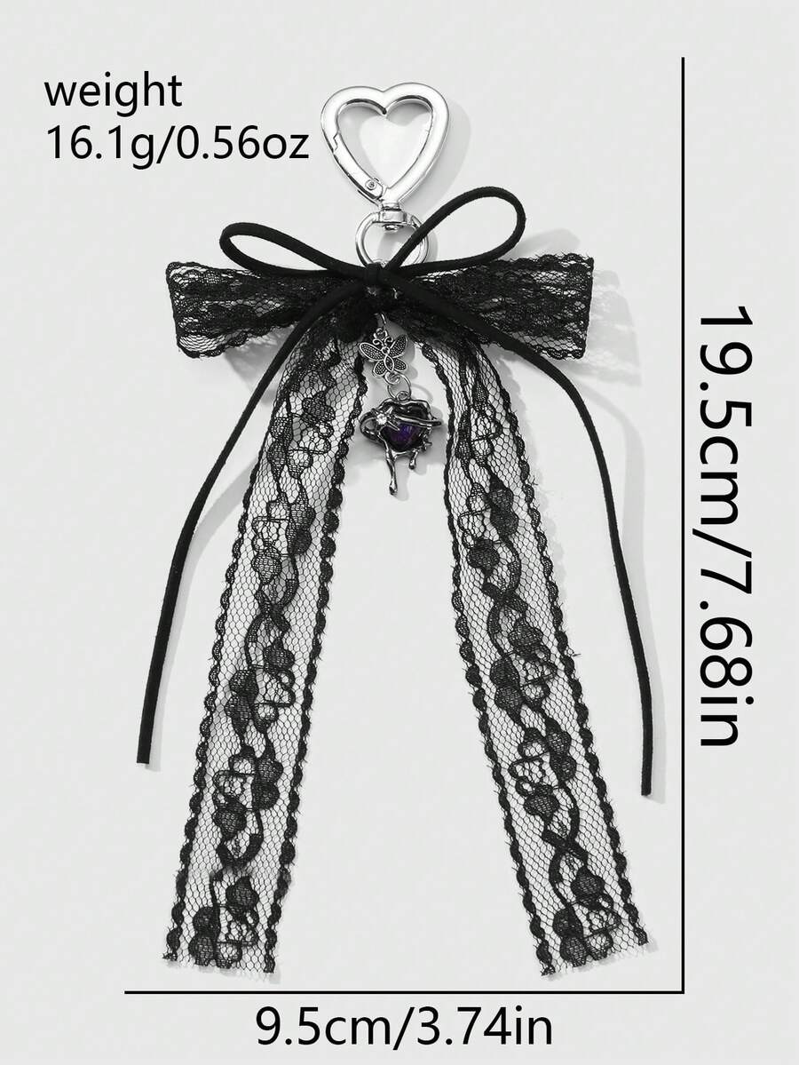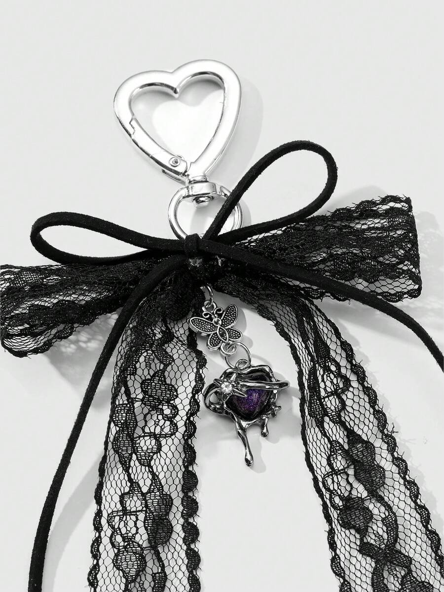 Kawaii 1 pieza Estilo Y2K Moda gótica retro Delicada cinta de terciopelo negro, Lazo de encaje de malla, Gota de agua de cristal imitación, Colgante de mariposa, Llavero/Accesorio de bolso, Adecuado para uso diario de mujeres/niñas, Regalo de vacaciones, Halloween