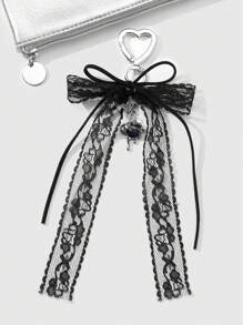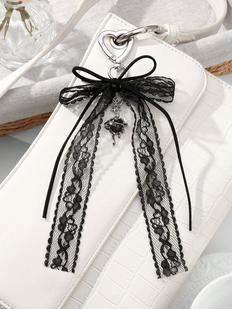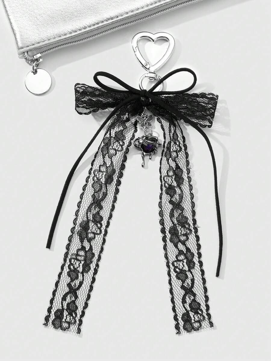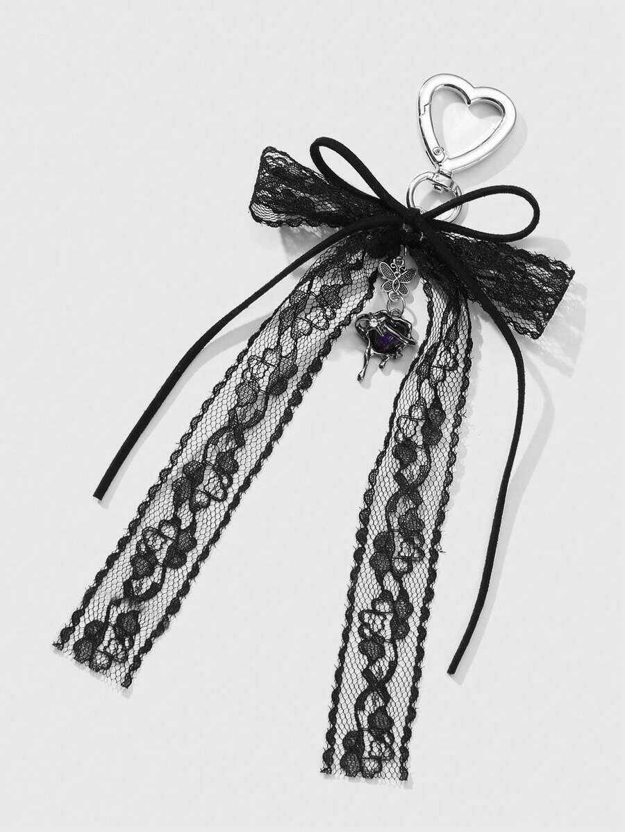 Kawaii 1 pieza Estilo Y2K Moda gótica retro Delicada cinta de terciopelo negro, Lazo de encaje de malla, Gota de agua de cristal imitación, Colgante de mariposa, Llavero/Accesorio de bolso, Adecuado para uso diario de mujeres/niñas, Regalo de vacaciones, Halloween