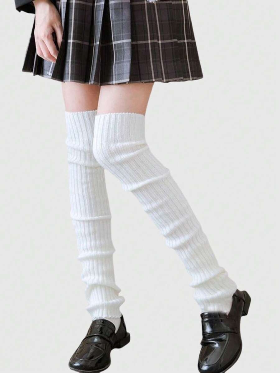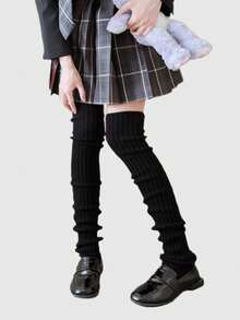 Kawaii 2 pares de calentadores de piernas de punto de unicolor con estilo Y2K, casuales y versátiles