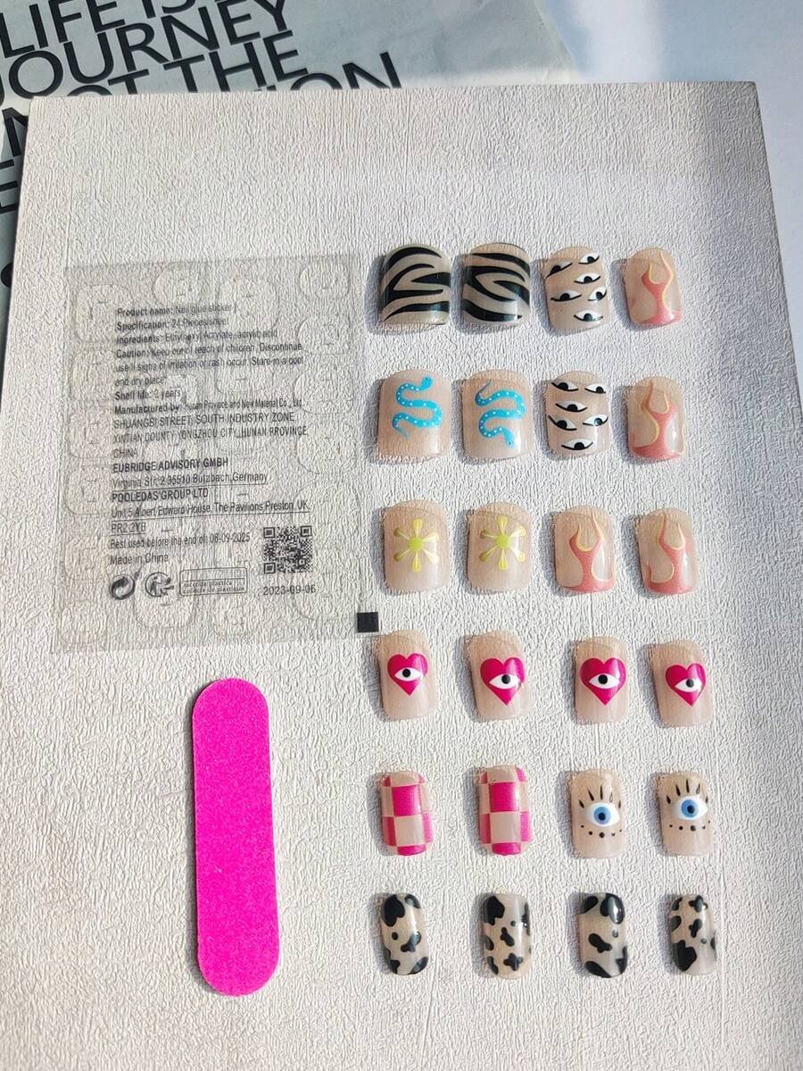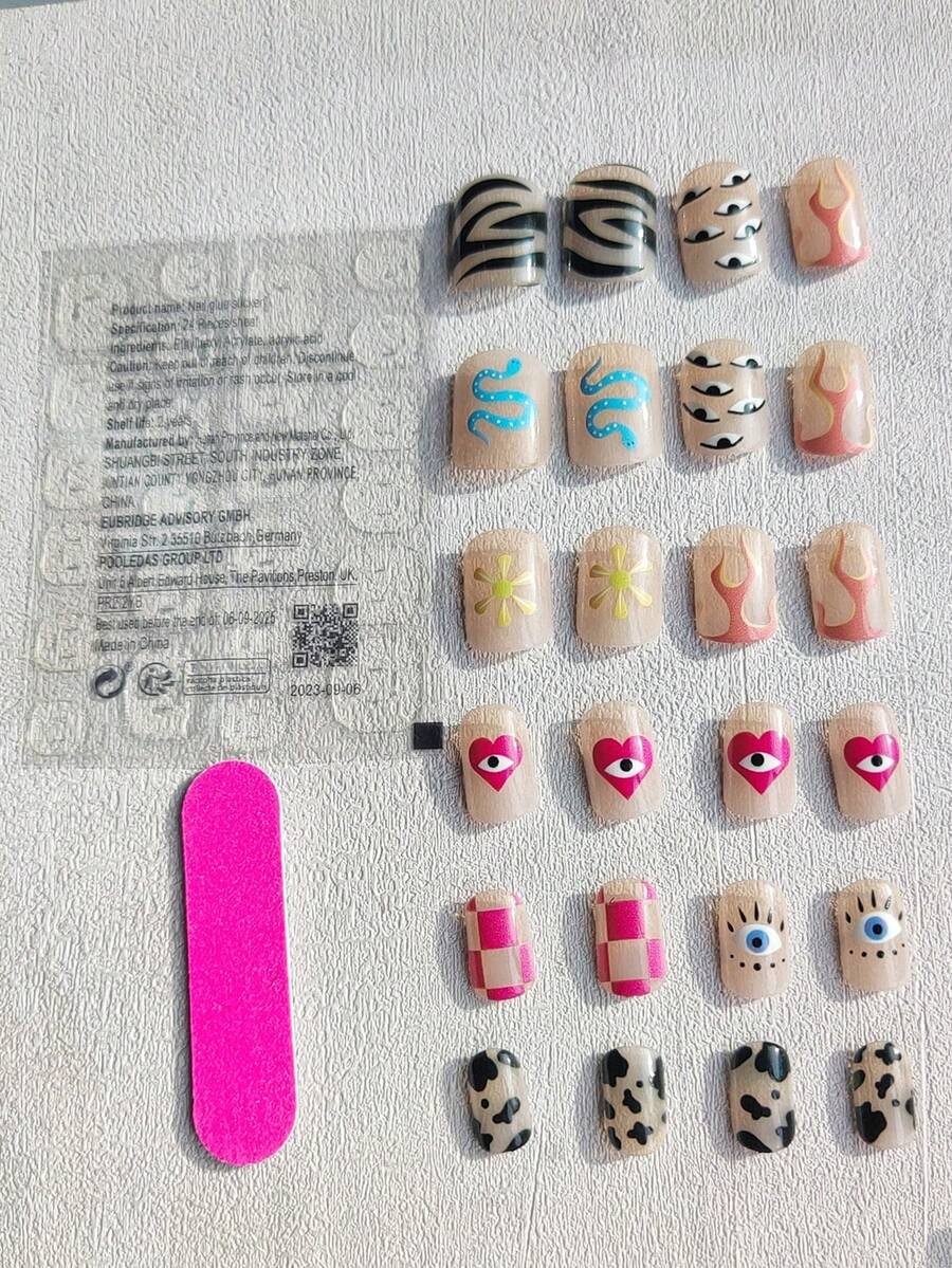 Kawaii 24 corto uña demonio ojo uña falso con gelatina pegamento