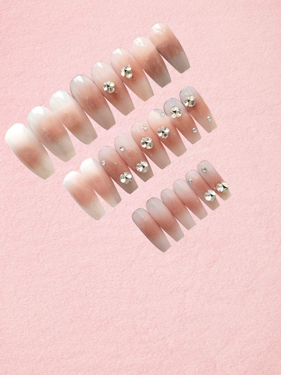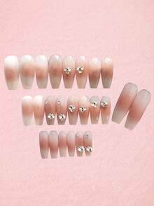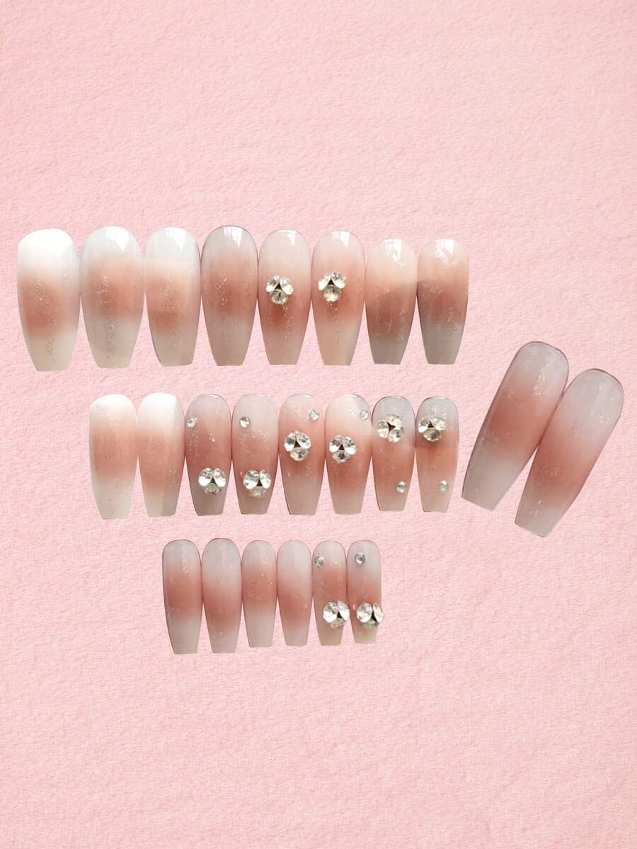 Kawaii 24 piezas largo ataúd con diseño de diamante de imitación Uña postiza & 1 hoja cinta
