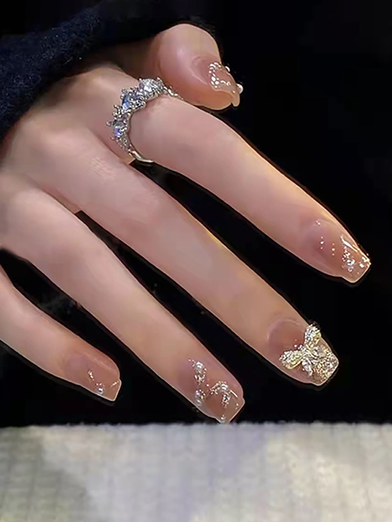 Kawaii 24 piezas Uña postiza con diamante de imitación con diseño de mariposa