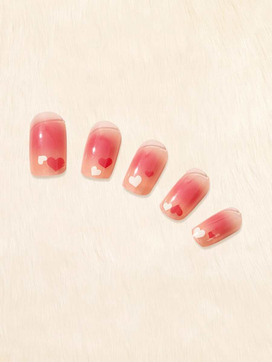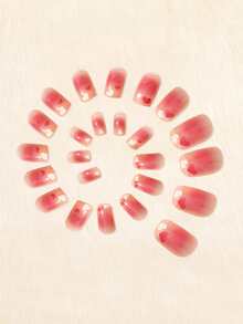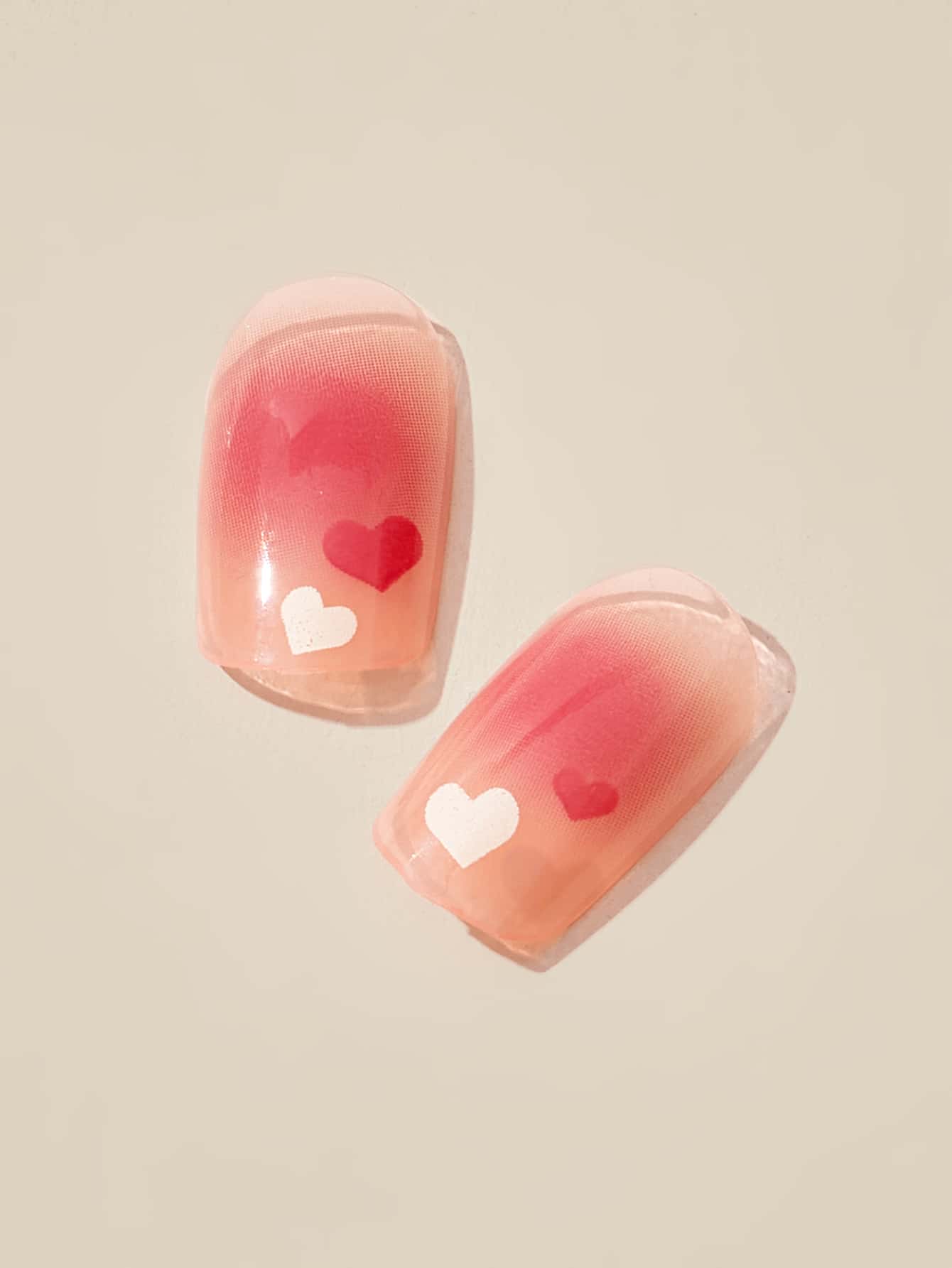 Kawaii 24 piezas cuadrado con estampado de corazón Uña postiza & 1 hoja cinta