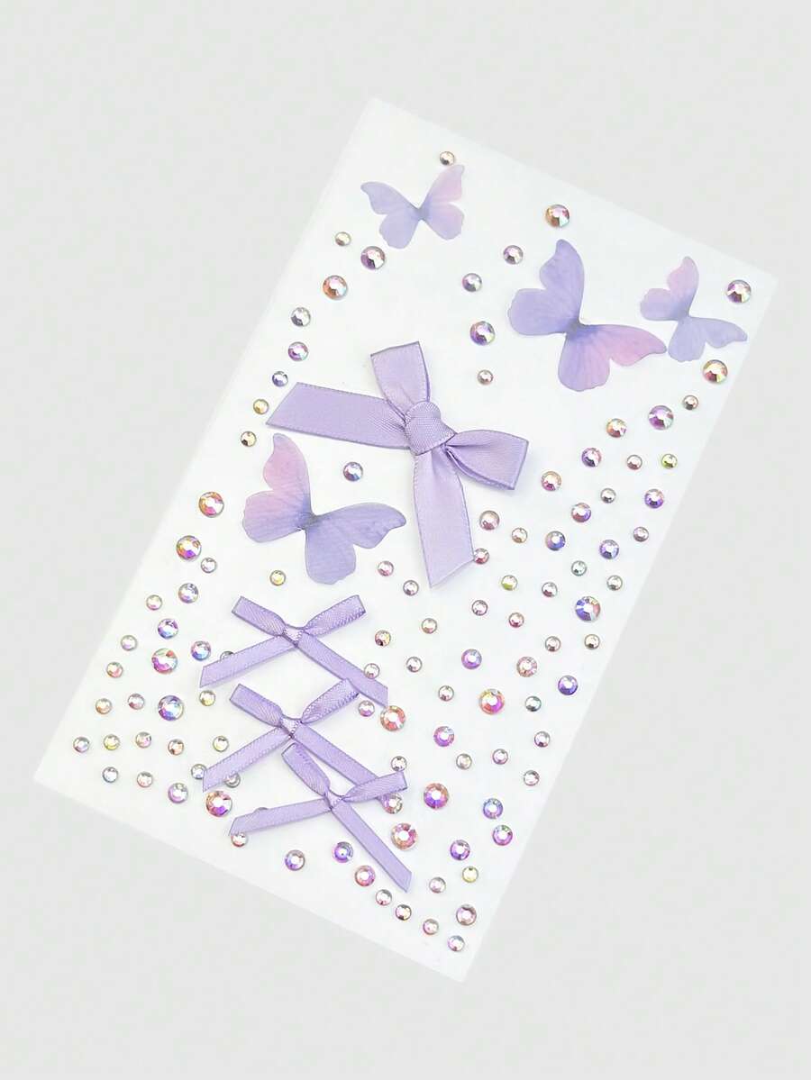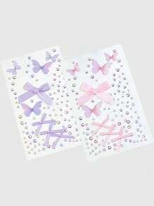 Kawaii 2 piezas de aplicaciones faciales con cristales de mariposa y lazo