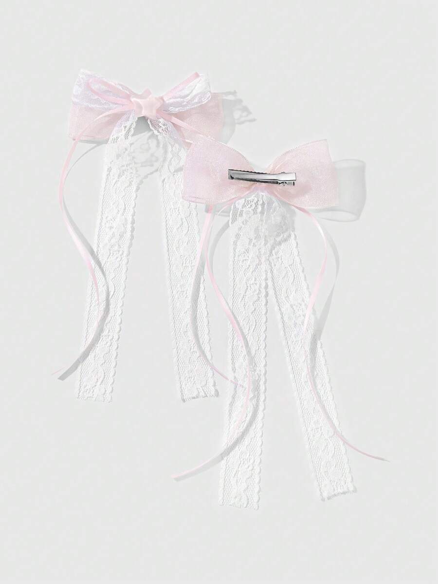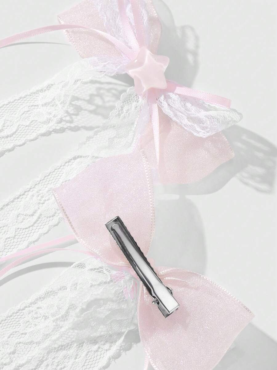 Kawaii 2 piezas de Elegantes y lindos Clips para el cabello con lazo de metal para niñas, Accesorios para el cabello con moño de malla rosa, Regalo elegante para ocasiones cotidianas y fiestas para mujeres, Pinzas para el cabello