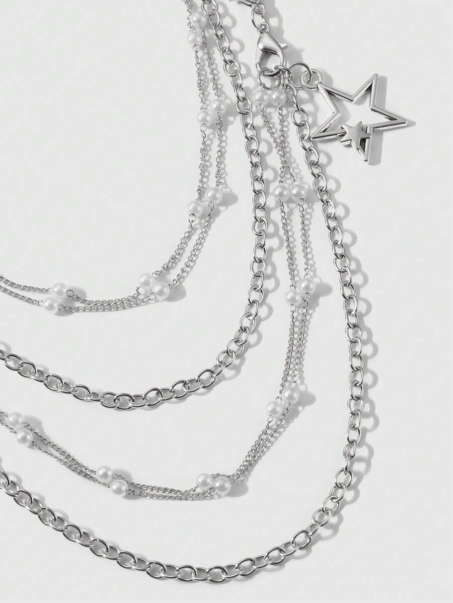 Kawaii 2 piezas de Joyería de lujo con cadena multicapa falsa de perlas y colgante de estrella hueca, cierre de langosta ajustable, decoración versátil para zapatos DIY para mujeres, gran regalo para cualquier ocasión