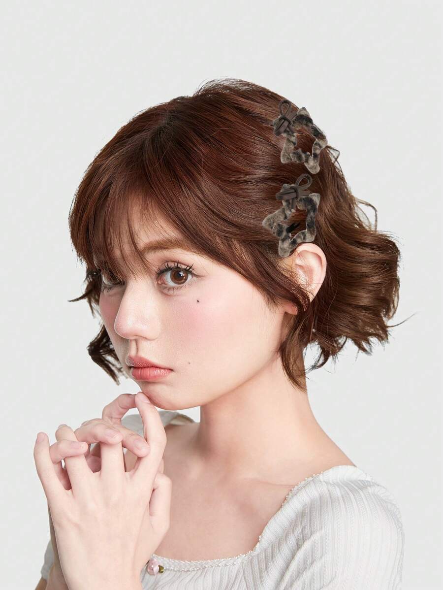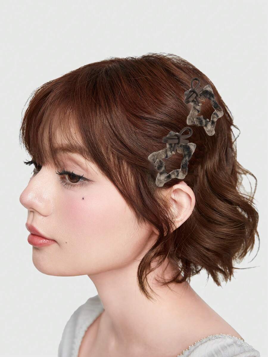 Kawaii Set de 2 piezas de pinzas para el cabello de alta calidad con lazo y estampado de leopardo en piel sintética marrón estilo coreano elegante y lindo, accesorio diario para mujeres/niñas, regalo de vacaciones