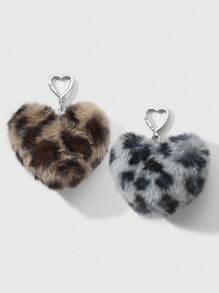 Kawaii Set de 2 combinaciones de llavero/dije de bolso con estampado de leopardo en marrón y gris, de estilo retro y elegante, ideal para parejas, hermanas, uso diario y regalos festivos