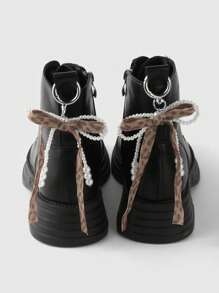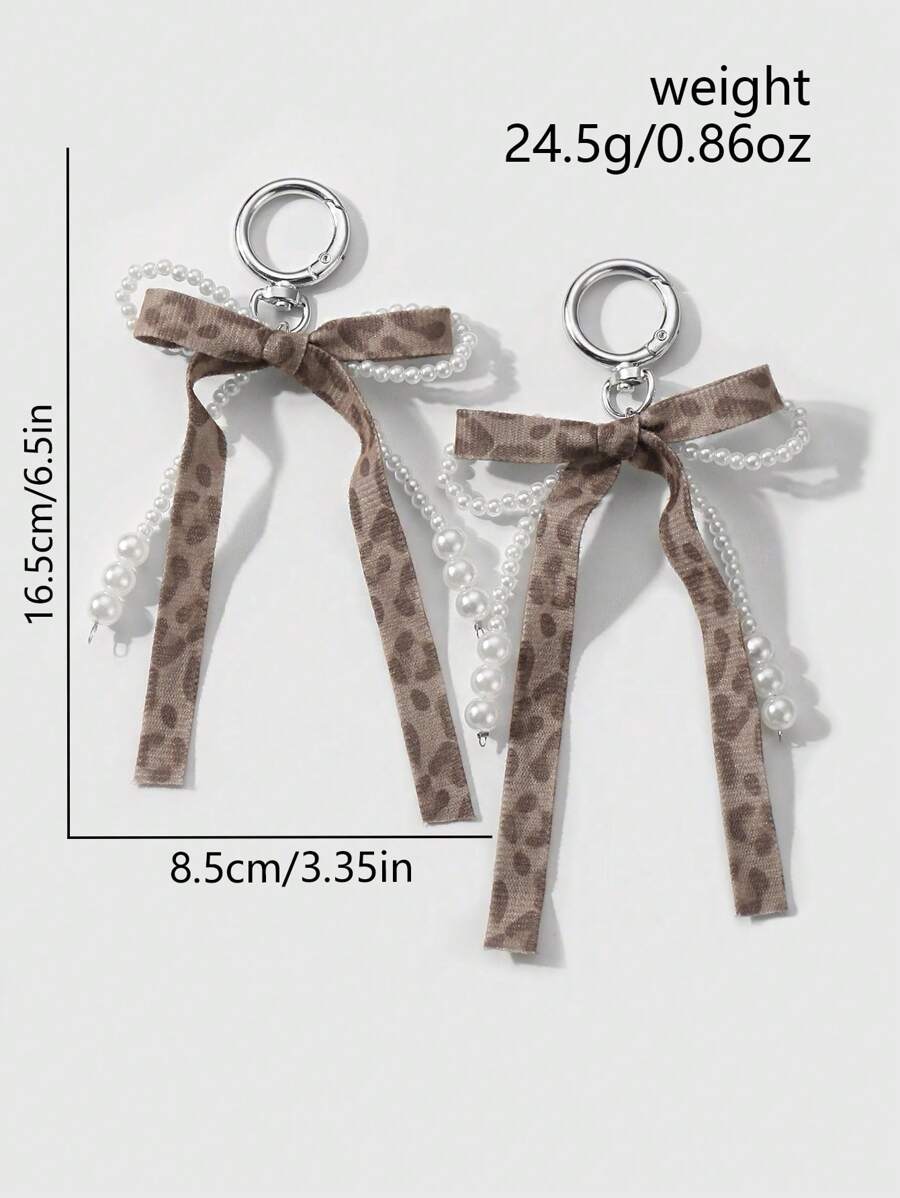 Kawaii Set de 2 decoraciones hechas a mano y de moda para zapatos, con perlas blancas falsas y lazo de terciopelo leopardo, adecuadas para uso diario de niñas/mujeres y como regalos para fiestas