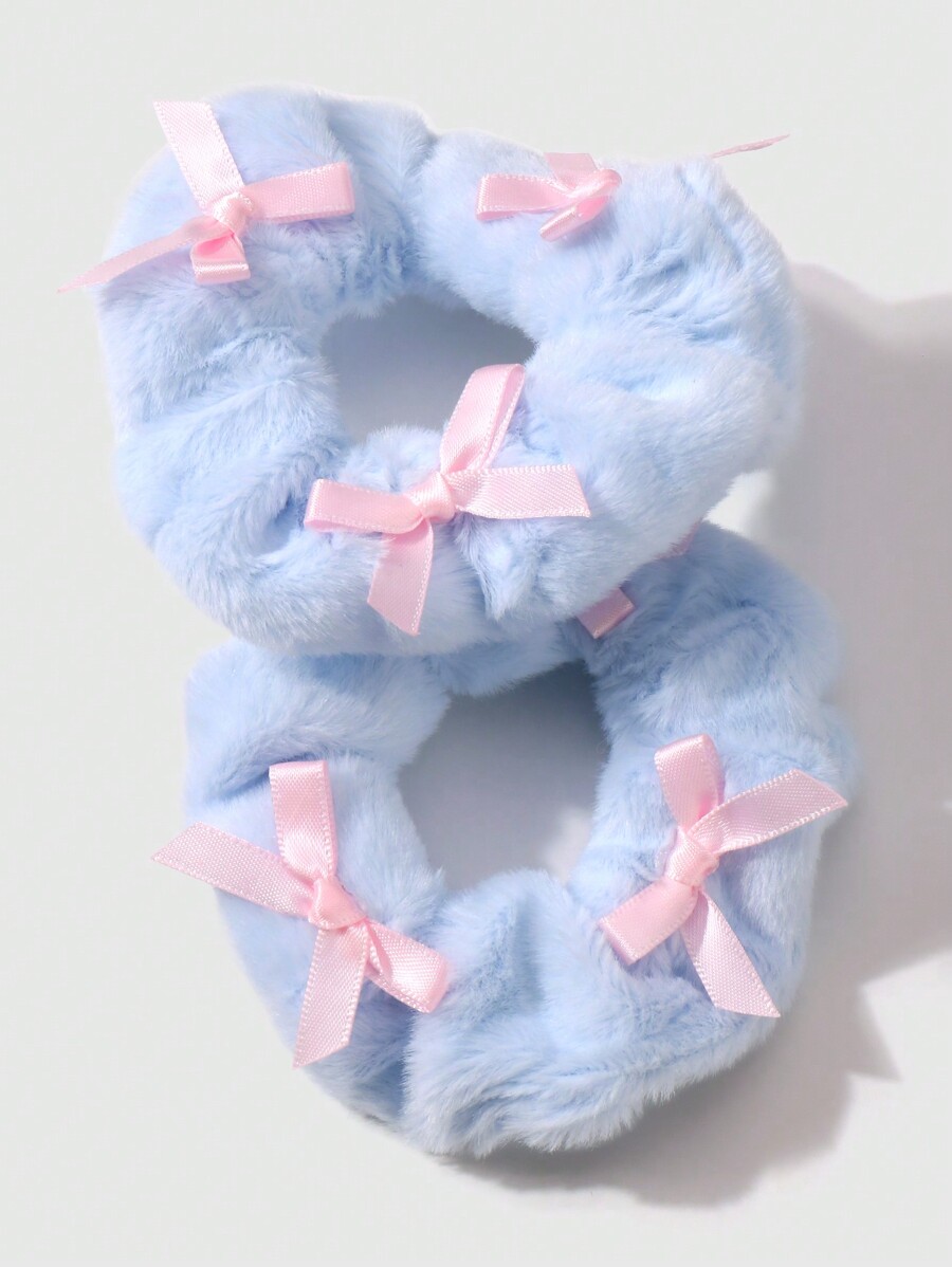 Kawaii Set de 2 coleteros elegantes con moño de cinta rosa y rosa/azul de peluche, perfectos como regalo para mujeres y niñas