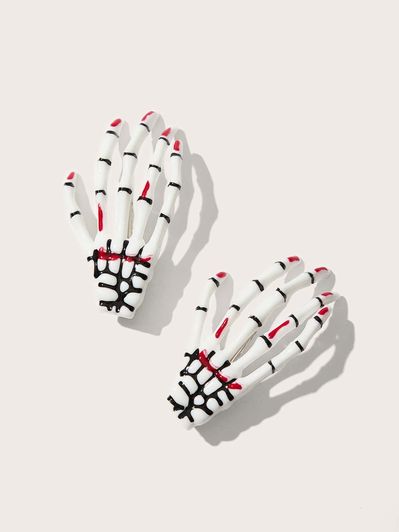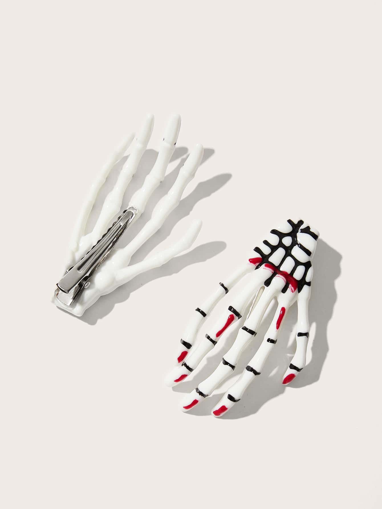 Kawaii 2 piezas Pinza de pelo de cocodrilo con diseño de mano de esqueleto