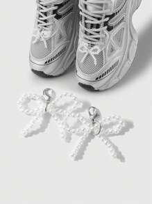 Kawaii Set de 2 piezas de clips decorativos para zapatos de estilo Y2K artesanales con perlas blancas de alta porosidad y lazos de aleación de CCB plateada con cierre de langosta, adecuados para mujeres/niñas, para uso diario y regalos festivos